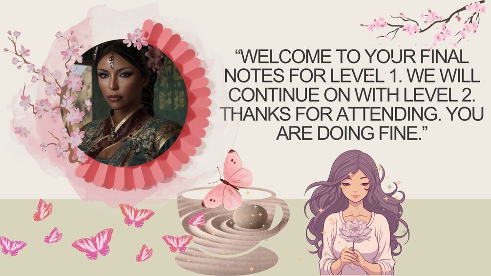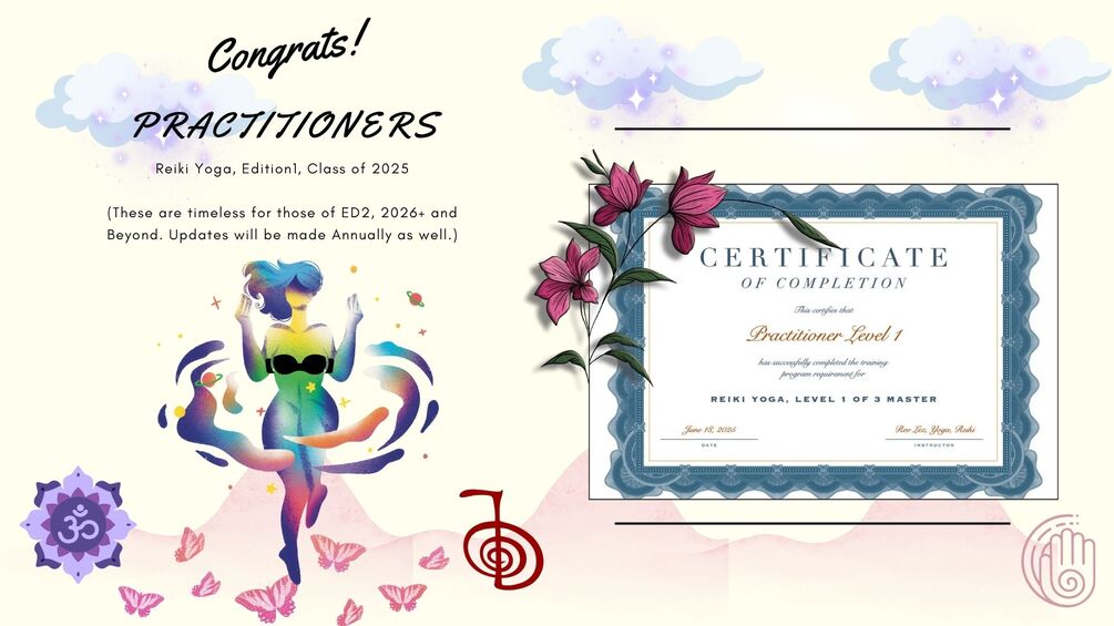 Final Notes to Review as we Close Level One. Make sure to review the orientation and videos as well. There’s more to come and material to cover in Levels 2-3. The content will be a combination of Reiki and Yoga. Also energy topics of our spiritual collective.